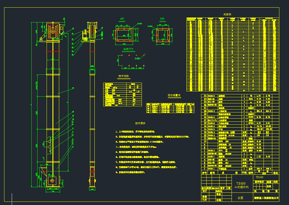TD型斗式提升機由運行部分(料斗與牽引膠帶),帶有傳動滾筒的上部區(qū)段,帶有拉緊滾筒的下部區(qū)段,中間機殼,驅(qū)動裝置,逆止制動裝置等組成,適用于向上輸送松散密度ρ<1.5t/m3粉狀、粒狀和小塊狀的無磨琢性和半磨琢性散狀物料,如煤、砂、焦末、水泥、碎礦石等。