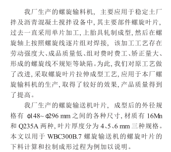 螺旋輸送機(jī)的螺旋葉片有實(shí)體螺旋面、帶式螺旋面和葉片螺旋面三種形式,其中,葉片式螺旋面應(yīng)用相對較少,主要用于輸送粘度較大和可壓縮性物料,這種螺懸面型,在完成輸送作業(yè)過程中,同時(shí)具有并完成對物料的攪拌、混合等功能。
